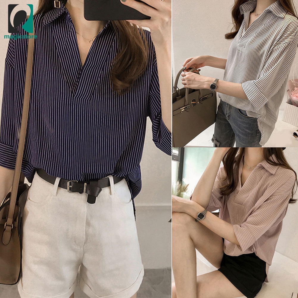Model blouse sekarang ini sangatlah beragam. Model baju atasan terbaik paling cocok dipakai wanita gemuk abwg03. Kali ini, saatnya update outfit yang lebih. Baju kantor wanita motif garis vertikal modern. Baju atasan blouse wanita lengan pendek garis garis ryn fashion.